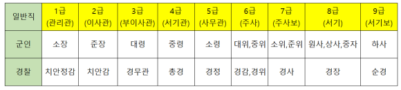 '호봉획정을 위한 공무원경력의 상당계급기준표'
