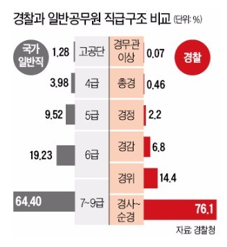 대부분이 하위직(순경~경사)에 머물러 있습니다.