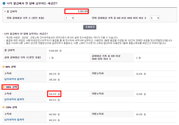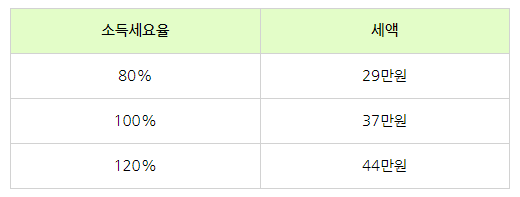 위 근로자 예에서 100%로 설정했을 때 세금과 80% 설정했을 때 세금은 8만원(37만원-29만원) 차이가 납니다.