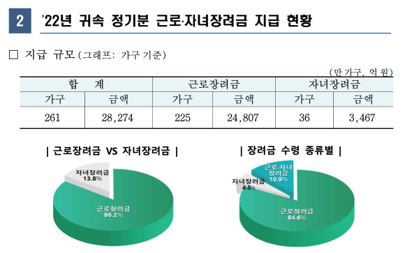 국세청에서는 가구당 소득에 따라 근로장려금, 자녀장려금을 매년 지급하고 있습니다.