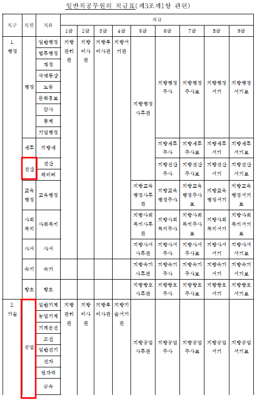 국가직은 전산직렬이 기술직군으로 분류되지만
