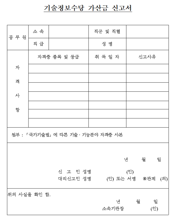 기술정보수당 가산금 신고서 양식 및 지급대상법률관련 2023. 11. 27. 04:28