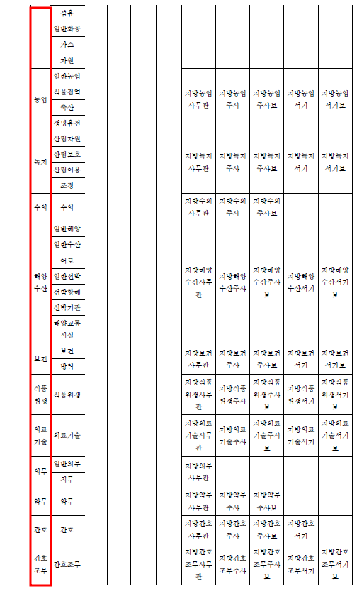 국가직에는 지방직에는 없는 직렬들이 있습니다