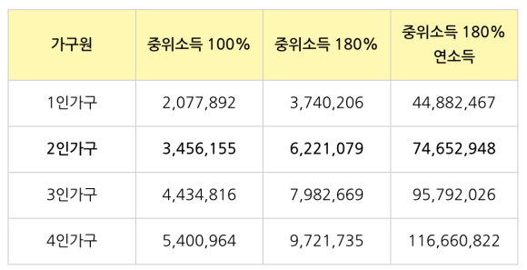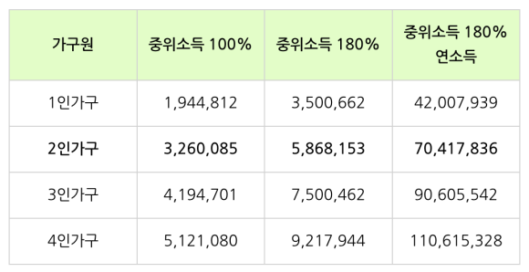기준중위소득 계산방법과 기준중위소득 180%는 얼마인지 정리해봤습니다.