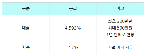 그나마 혜택은 대출은 금리가 낮고, 수시입출금 통장임에도 불구하고 저축은 금리가 높은게 장점이라고 할 수 있겠습니다.
