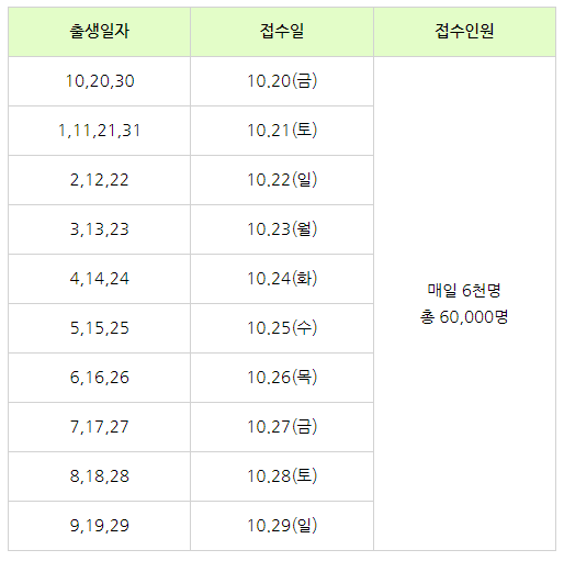 만약 본인의 생일이 15일 일경우, 10.25(수)요일에 선착순으로 신청접수를 하면 됩니다.
