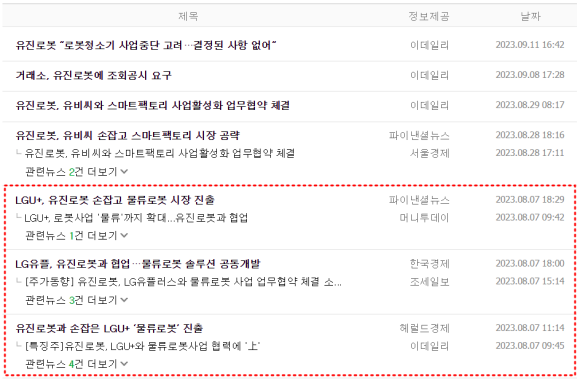 유진로봇의 시세 폭등을 이끌었던 이유에는 LGU+와 공동개발하여 물류로봇을 진출시켰던게 크게 작용한 것 같습니다.