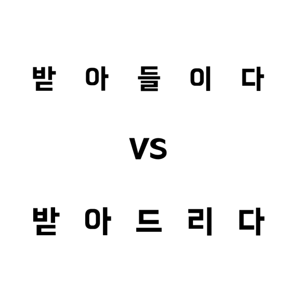 받아들이다 받아드리다를 사용할 경우