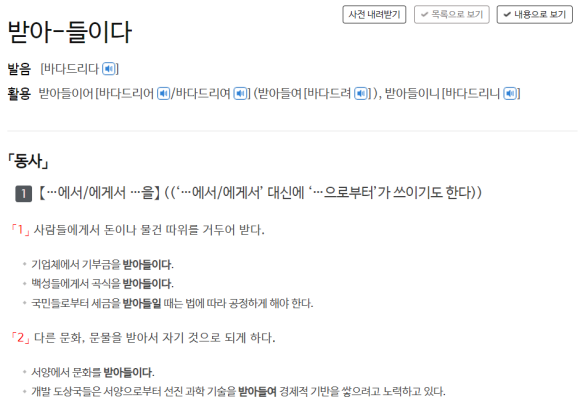 받아 드리다는 사용가능