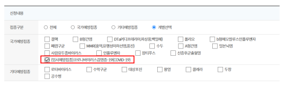 - 신청내용 - 개별선택 - 코로나감염증19 체크