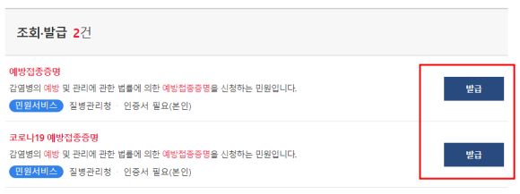 예방접종증명서발급 혹은 예방접종증명서라고 검색할 경우 다소 복잡한 검색결과가 나오므로, '예방접종증명' 까지만 쳐서 검색하면 됩니다.