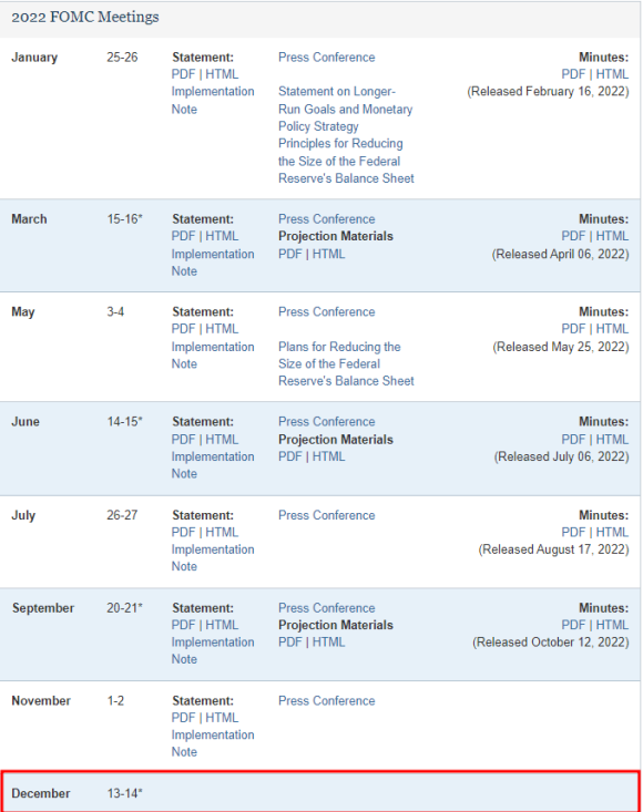 연방공개시장위원회는 22년 1회 더 남았습니다.