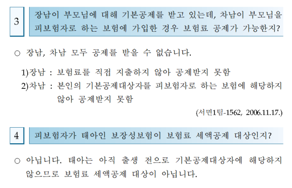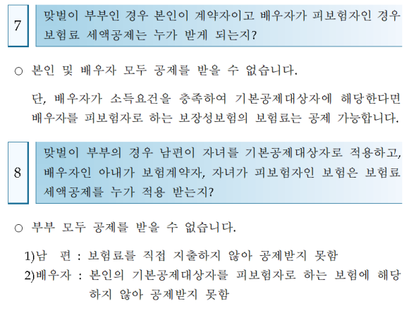 형제나 맞벌이 부부의 경우 한쪽에 부모님을 기본공제에 넣었다면 보험료도 그쪽으로 몰아줘야 합니다.