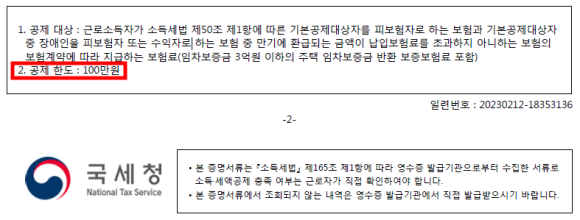 만약 장애인전용보장성 보험이 별도로 있다면 이때는 100만원의 15%인 15만원을 추가로 더 세액공제에 반영됩니다.