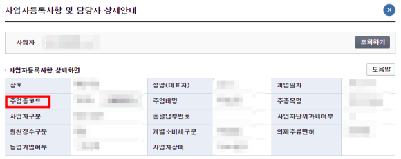사업자 주업종코드를 확인, 출력 하는 방법은 아래와같습니다.