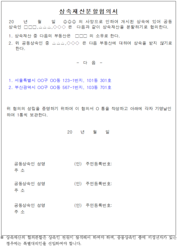 만약 상속재산분할협의서 양식을 작성하기 전에