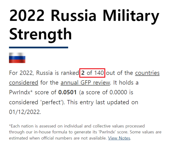 GFP 기준, 우크라이나 국방력 순위는 22위입니다.