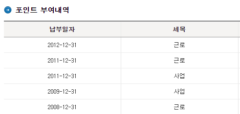 이렇게 조회하면 연도 세금포인트와 포인트 부여내역을 한번에 조회 할 수 있습니다.