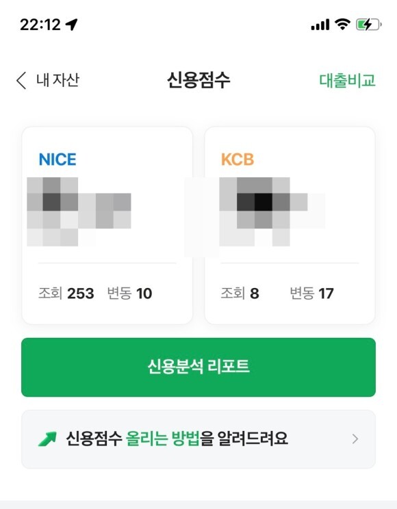 신용점수를 확인하는 방법은 KCB나 나이스에 유료서비스에 가입하지 않더라고 토스뱅크나 카카오페이, 네이버페이 등을 이용하면 양사 모두의 신용점수를 간편하게 확인할 수 있습니다.