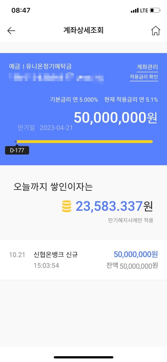 목돈을 넣어놔서 이자소득이 생겨서 좋긴한데