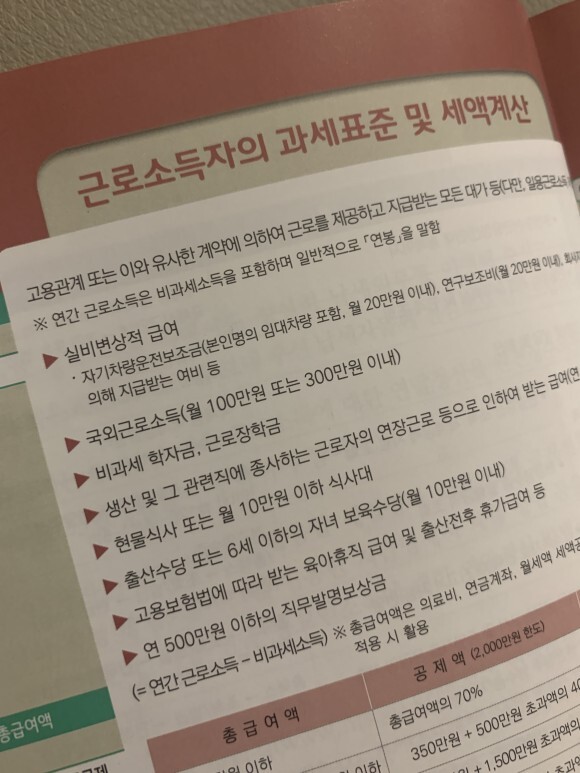 - 총급여액 = 연간근로소득(연봉) - 비과세소득