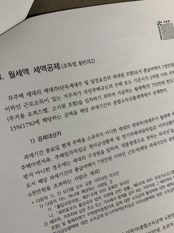 공제조건은 ▶12.31일기준 무주택세대주이면서 ▶국민주택규모(국평-전용84)이하, 주거용오피스텔 포함 ▶전월세보증금 대출 원리금 상환금액은 소득에서 뺍니다.
