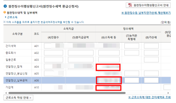 환급액은 (-)마이너스로 표시되므로 부호 헷갈지기 않게 유의하시고요.