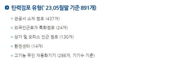 현재 탄력점포는 전국에 891개를 운영하고 있습니다.