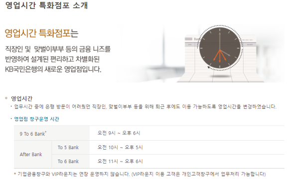 몇몇 점포에서는 특화점포라고 해서 야간에 영업을 하는 은행도 있습니다.
