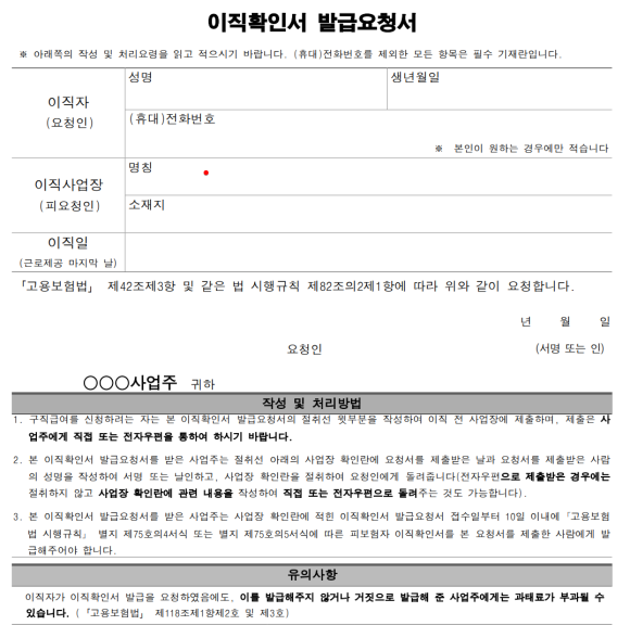 이직확인서 발급요청서 양식과 작성법 및 제출방법 정리해봤습니다.
