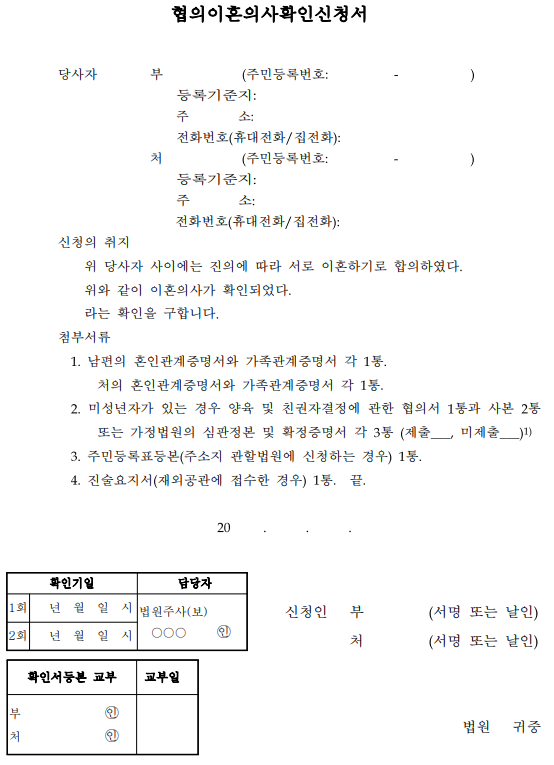 협의이혼 서류 양식 다운로드
