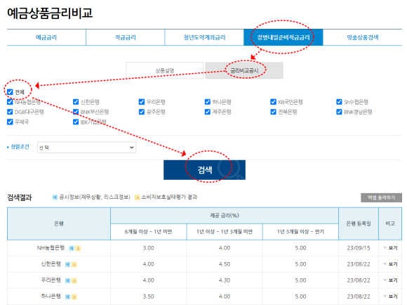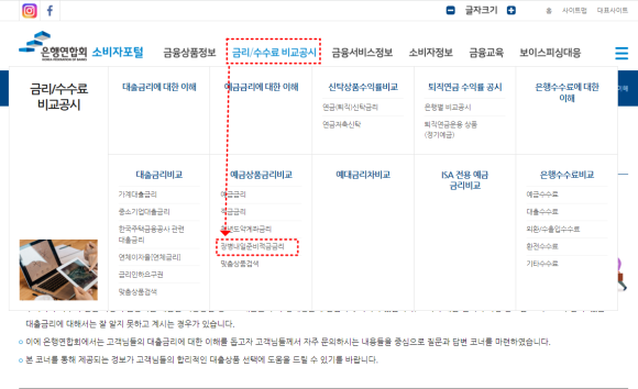③'금리비교공시' → 은행선택 → '검색' 클릭