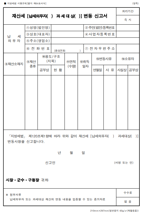 과세대상 변동신고서를 같은 서식을 사용합니다.