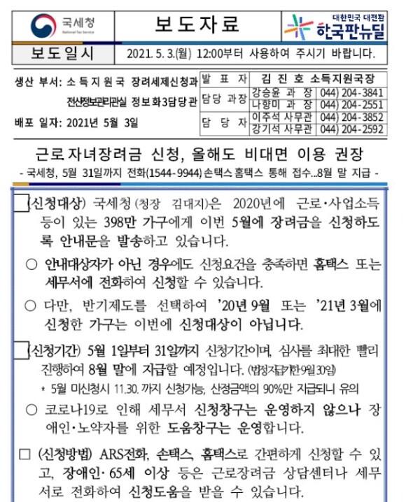 매년 5월은 근로장려금/자녀장려금 신청기간 이기도 합니다.
