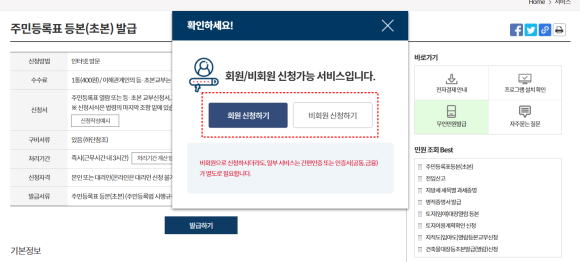 비회원도 발급 가능하기 때문에 꼭 회원가입 하실필요는 없습니다.