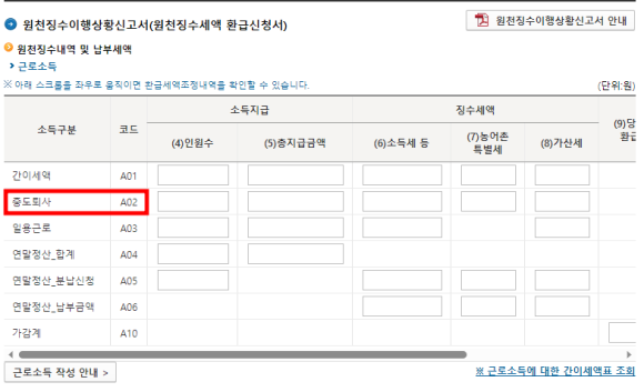 회사입장에서도 근무자가 퇴직하게 되면 연말정산 대신 중도정산을 해줘서 근로자에게 환급을 해줘야 합니다.