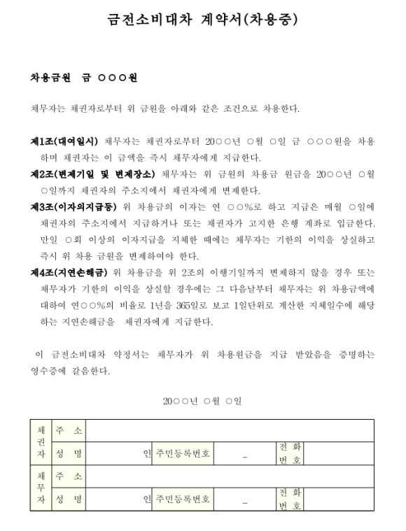 때문에 돈을 빌렸을 때 차용증을 작성합니다.