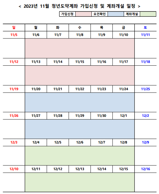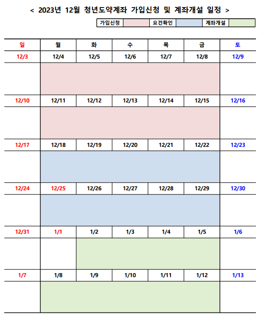 해당 일정은 '서민금융진흥원'에 공지되어 있는 신청 및 개설기간 입니다.