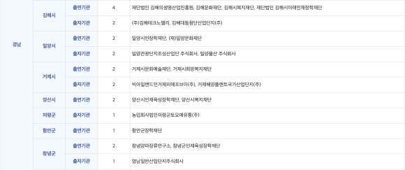 클린아이에 접속해보면, 각 지자체별로 출연기관, 출자기관 목록을 한눈에 볼 수 있습니다.