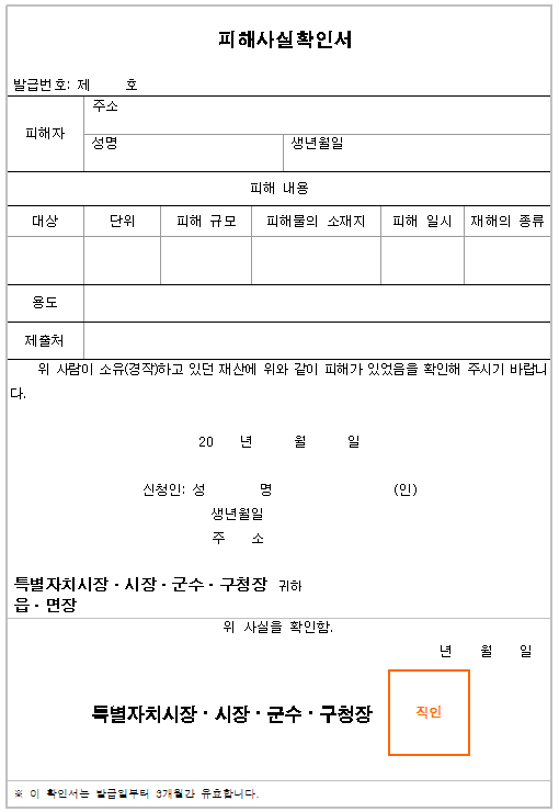 지자체에서 발행해주는 피해사실확인서와