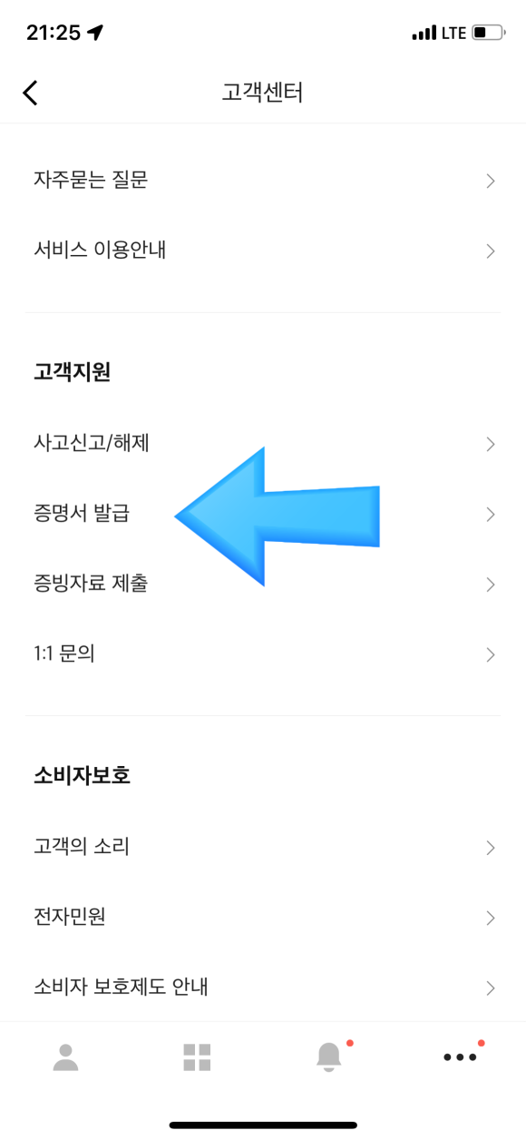 - 고객센터 - 증명서 - 나의증명서발급내역