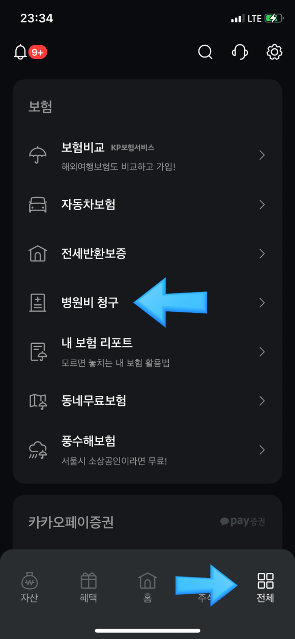 카카오페이를 통해서 실비 보험금 병원비를 청구할 수 있습니다.