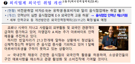 당장 올해 연말부터는 음식점에도 E-9비자 인력이 일을 할 수가 있게 되었습니다.