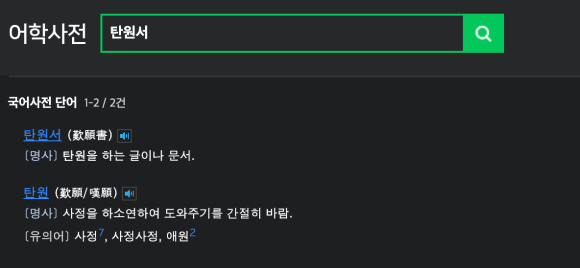 탄원서는 어감이 다소 거칠지만 '사정을 하소연 하여 도와주기를 간절히 바라'는 내용을 문서로 제출하는 것입니다.
