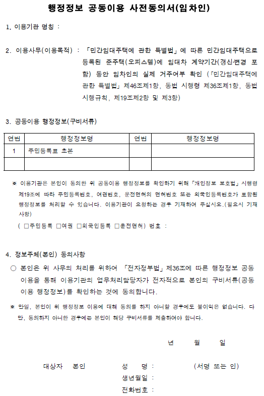 행정정보동의서의 정확한 명칭은 행정정보 공동이용 사전동의서 입니다.