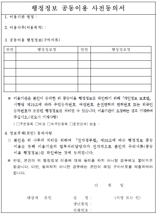 행정정보 공동이용 사전동의서