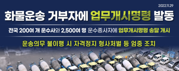 화물연대 업무개시 명령 복귀하지 않으면(화물자동차 운수사업법 제14조)법률관련 2023. 12. 9. 03:38