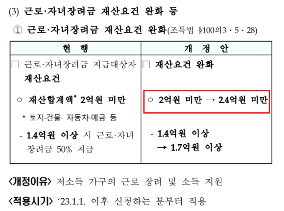 2023 근로, 자녀장려금도 개편안이 발표되었습니다.