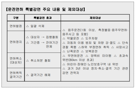 광복절 특별사면 운전면허 관련해서 특이한 점은 일반 면허 정지, 취소대상자는 포함되었으나 음주운전은 1회라고해도 특별사면 대상자에서 제외되었습니다.