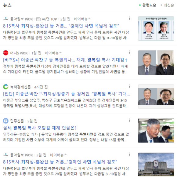 이번 광복절 특별사면에 거론되는 정치인, 기업인들이 뉴스에서 벌써 언급되고 있습니다.